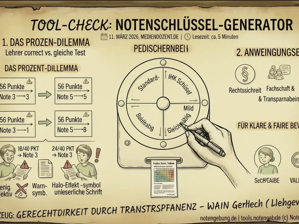 Notenrechner: Was das Tool kann – und warum es das tut Kategorie: Tools Lesezeit: ca. 7 Minuten Was kann das Tool? Der Notenrechner wandelt Punkte in […]