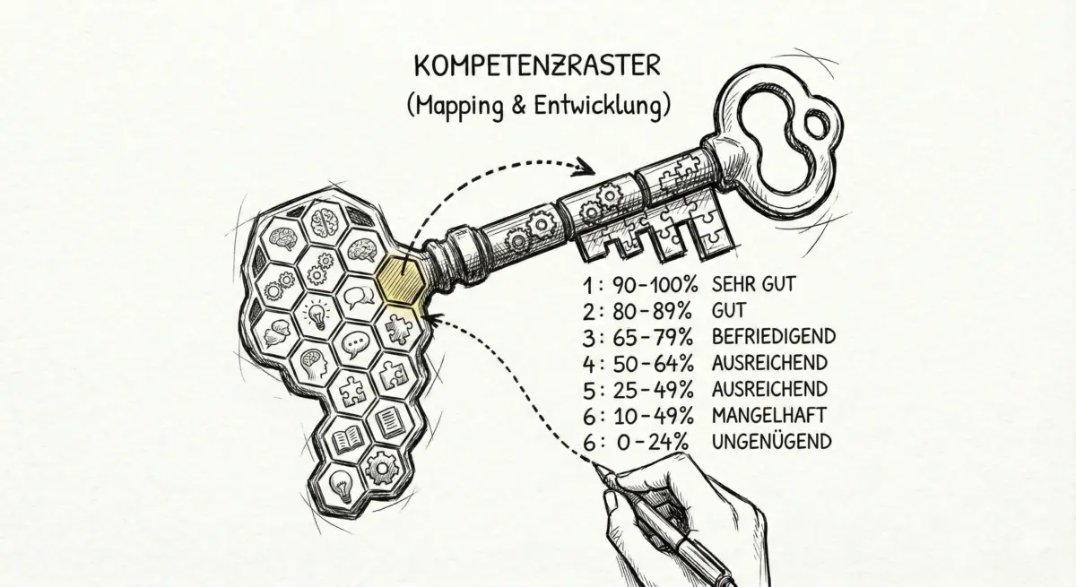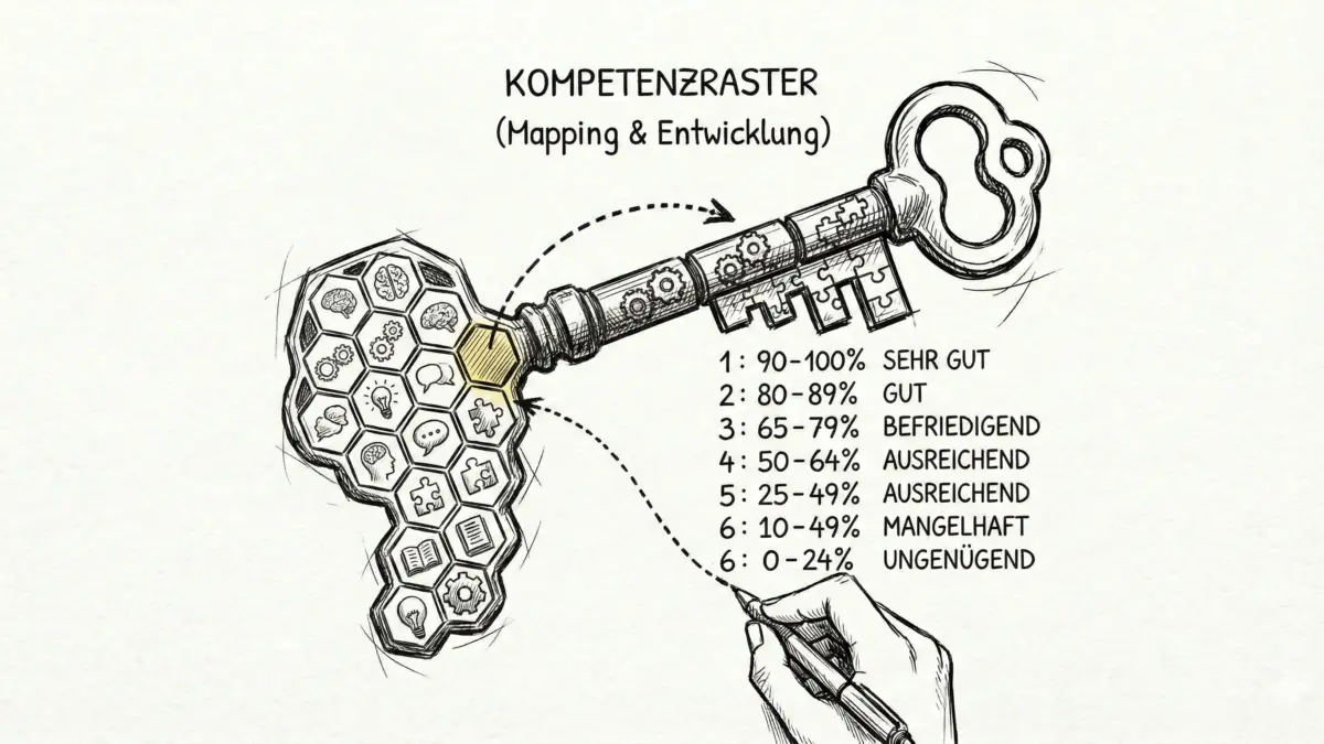 Ein Kompetenzraster bewertet nicht. Ein Mensch bewertet – mithilfe des Rasters. Das klingt wie eine sprachliche Petitesse, ist aber der entscheidende Unterschied.