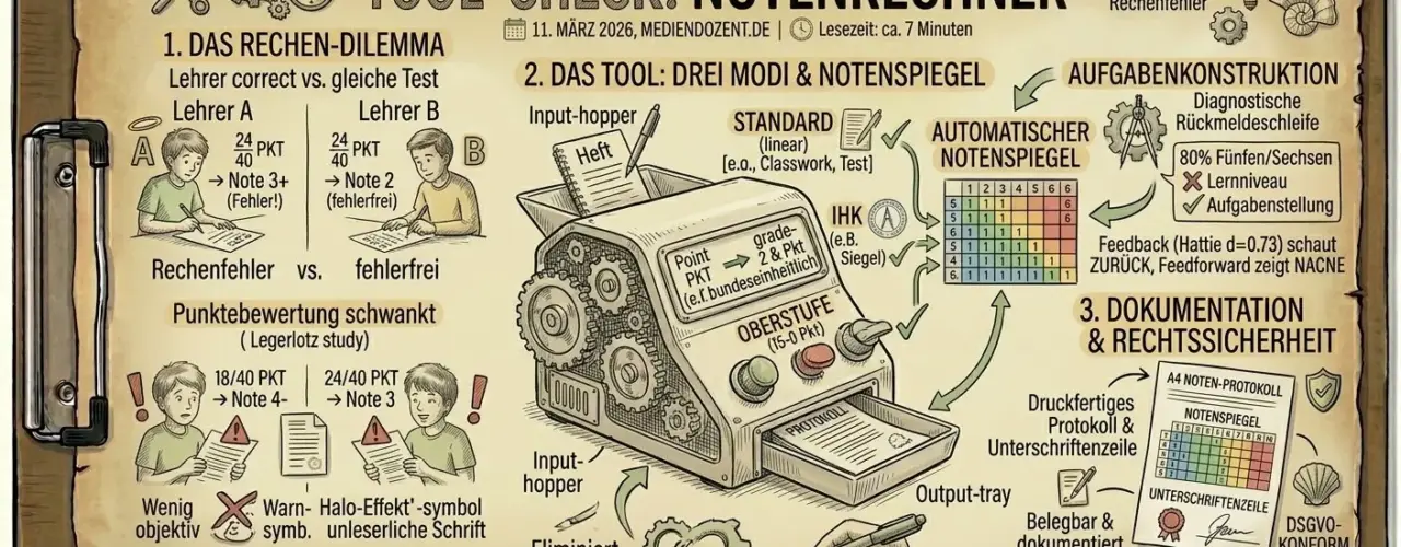 Notenrechner: Was das Tool kann – und warum es das tut Kategorie: Tools Lesezeit: ca. 7 Minuten Was kann das Tool? Der Notenrechner wandelt Punkte in … Notenrechner: Was das Tool kann – und warum es das tut weiterlesen