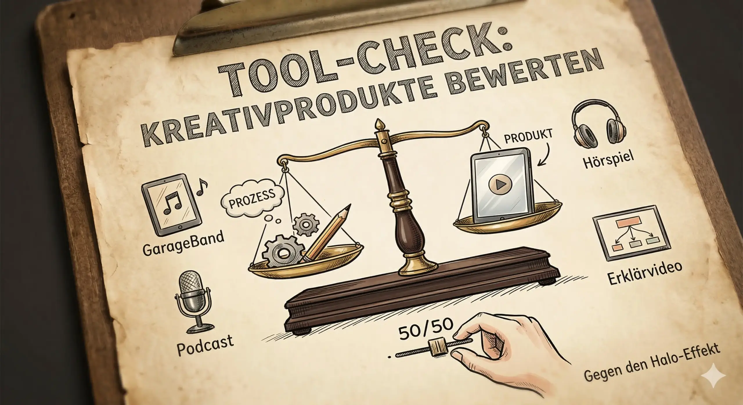 Bewertungsraster für digitale Kreativprodukte – GarageBand-Remix, Podcast, Hörspiel, Erklärvideo. Prozess, Produkt und Reflexion, individuell gewichtbar, druckfertig.