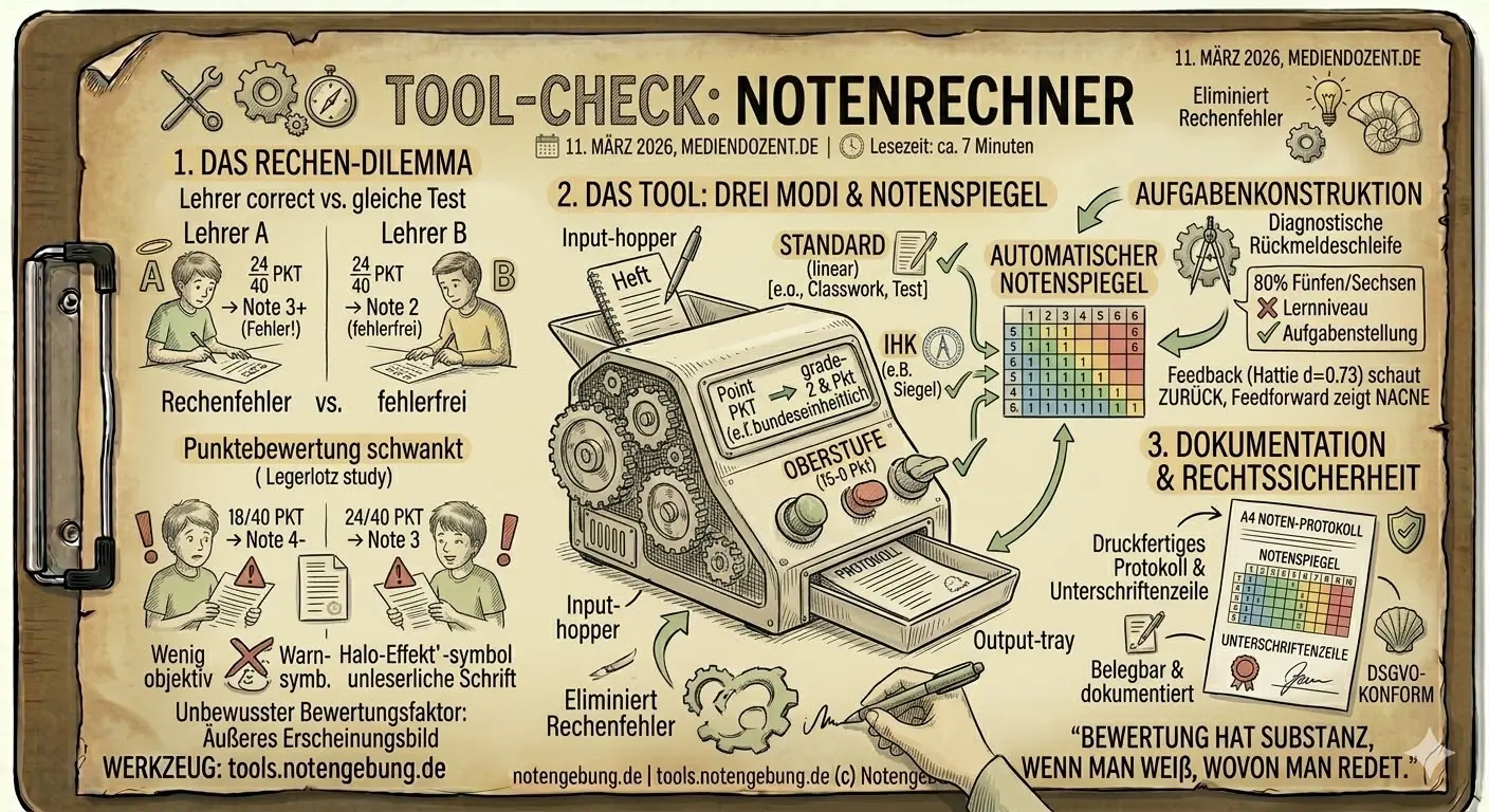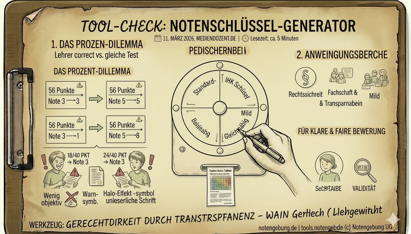 Alle Tools auf notengebung.de laufen direkt im Browser – kein Login, keine Installation, keine Daten die irgendwo landen. DSGVO-konform, kostenlos, sofort nutzbar.